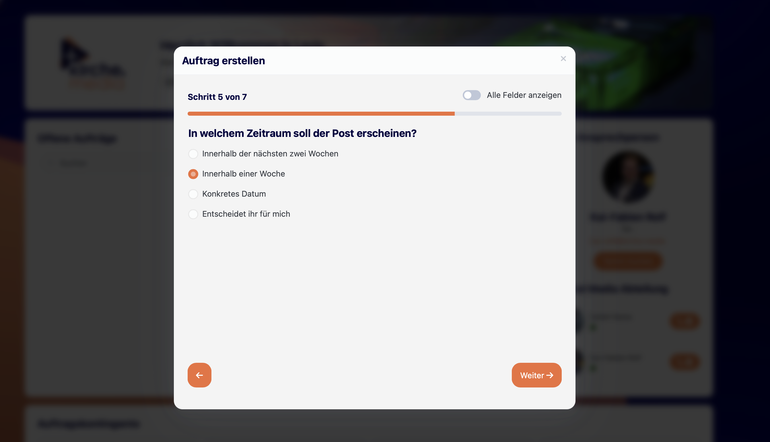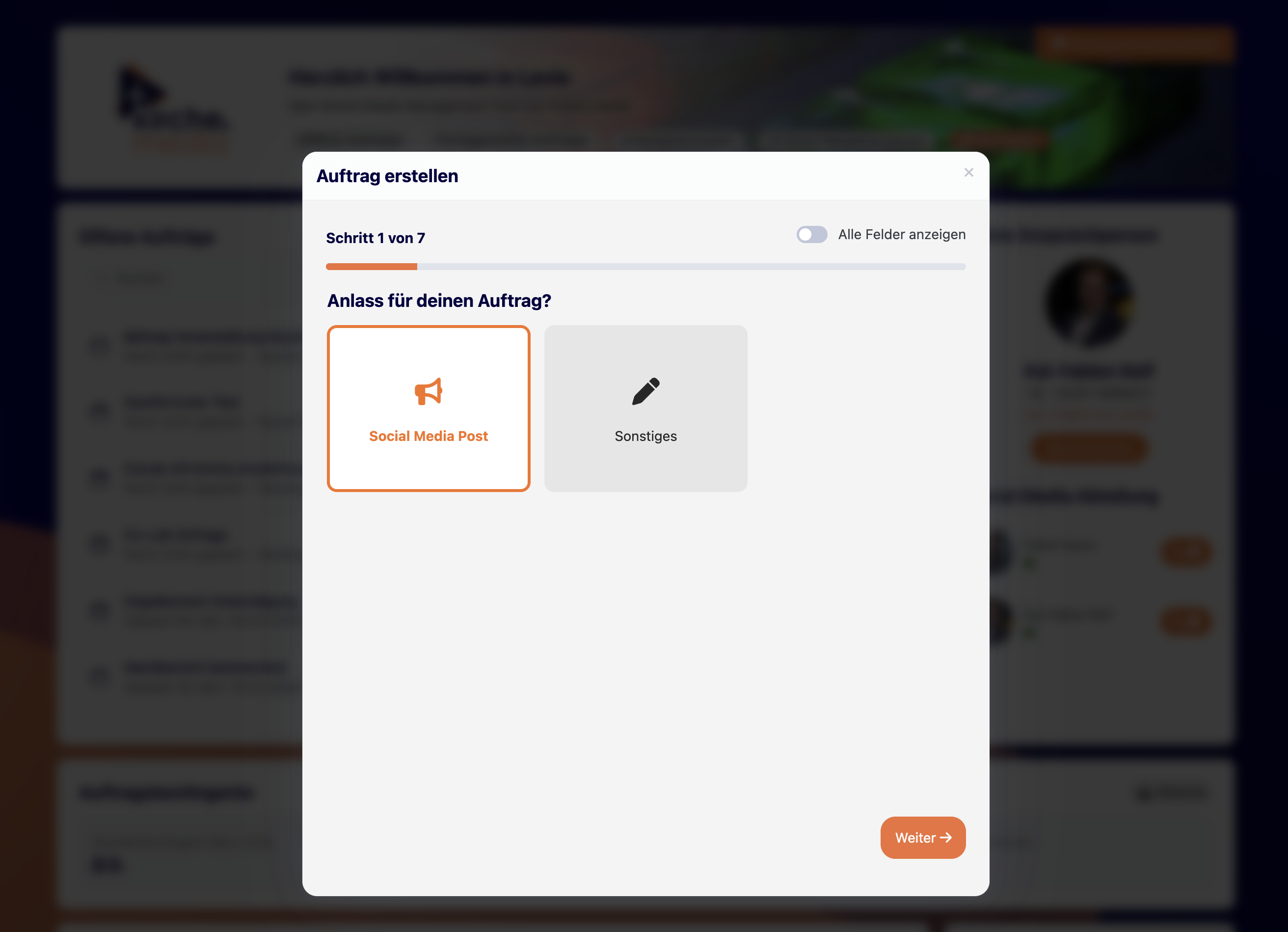 Nach deiner Auswahl klickst du auf „Weiter“, um zum nächsten Schritt zu gelangen.