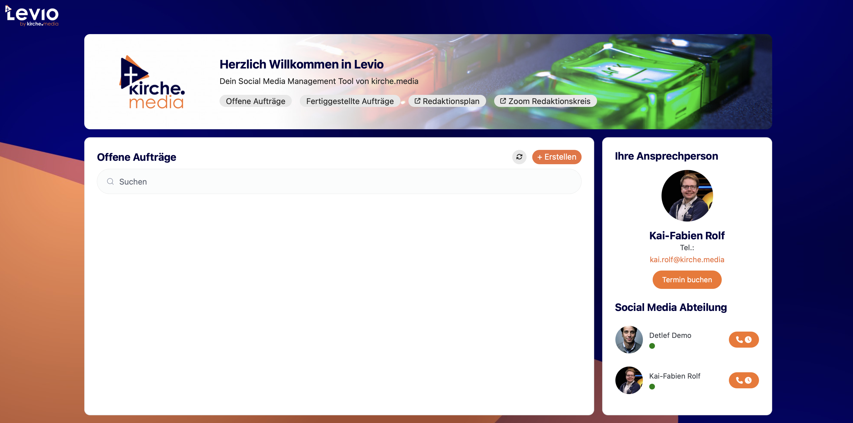 In Levio können auch externe Personen ohne Registrierung einen Auftrag einreichen – über das Gastformular unter: levio.kirche.media/gastformular